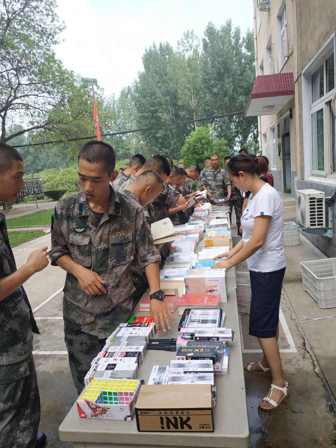 “八一”前夕,襄城縣店積極組織員工冒著高溫到駐軍部隊(duì),開(kāi)展主題流動(dòng)售書(shū)活動(dòng),為戰(zhàn)士們送去豐富的精神食糧,受到熱烈歡迎。