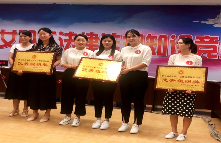 為喜迎新中國成立70周年,駐馬店市總工會組織開展了駐馬店市女職工法律法規(guī)知識競賽活動。駐馬店市店工會積極響應(yīng),認真組隊;參賽隊員利用工作間隙和休息時間認真學(xué)習(xí)相關(guān)知識、相互提問、模擬答題;在8月22日上午的競賽活動中,在必答、搶答和風(fēng)險題回答各環(huán)節(jié)表現(xiàn)優(yōu)秀,獲得了市總工會頒發(fā)的優(yōu)秀組織獎。