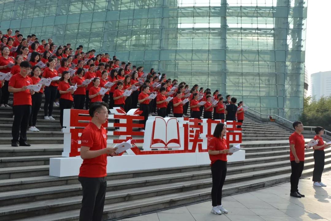 當(dāng)日上午,鄭州市活動現(xiàn)場共設(shè)8個分會場。在河南省藝術(shù)中心廣場前,400多名河南省新華書店員工深情誦讀并齊聲唱響《我和我的祖國》,展現(xiàn)了身處新時代、新征程中的新華人的驕傲與自豪。