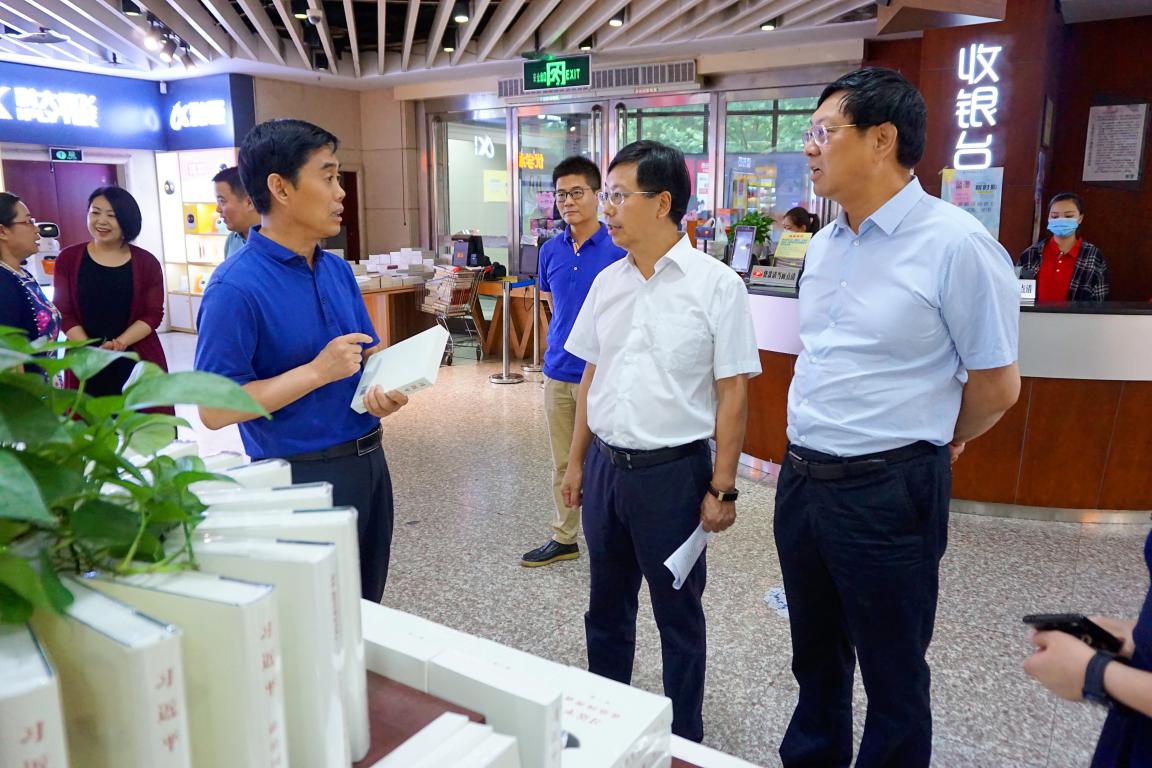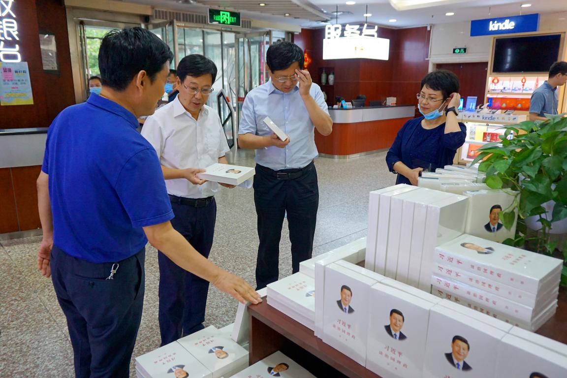 7月22日上午,省委宣傳部副部長、省新聞出版局局長譚福森,省委宣傳部版權和印刷發(fā)行處處長張萬勇、調(diào)研員侯宏偉一行冒雨前往河南省新華書店調(diào)研《習近平談治國理政》第三卷發(fā)行情況。中原出版?zhèn)髅郊瘓F黨委書記、董事長郭元軍,中原大地傳媒股份有限公司副總經(jīng)理、河南省新華書店發(fā)行集團總經(jīng)理宋保安陪同調(diào)研。