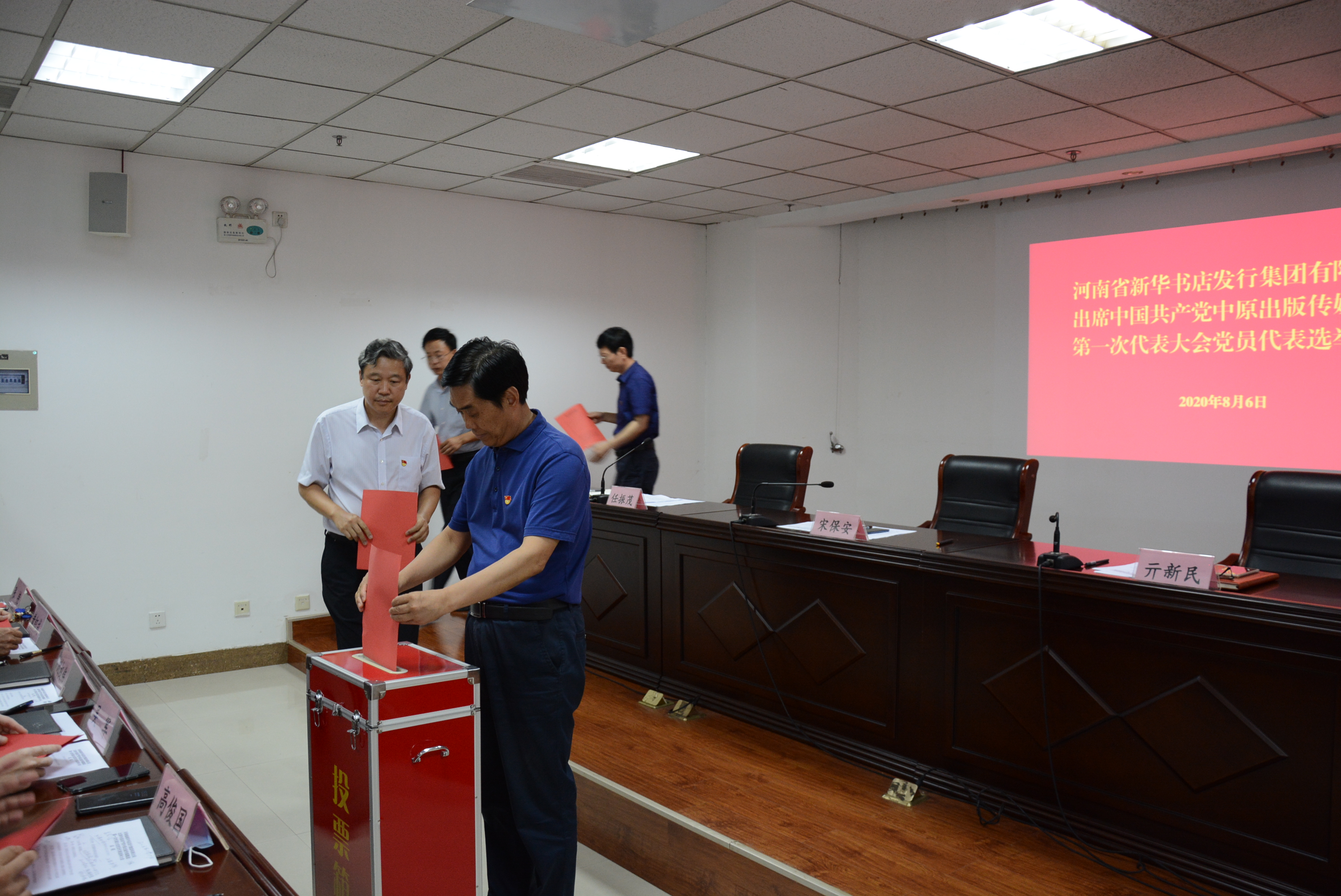 大會表決通過了大會選舉辦法、總監(jiān)票人、監(jiān)票人、總計票人、計票人建議名單。在歡快的音樂聲中,與會黨員依次走到投票箱前,投下了神圣的一票。經過大會計票人員認真統計和復核,16時許,總監(jiān)票人向大會報告投票結果。大會主持人宣布:宋保安、亓新民、黃鈺成等八人當選為河南省新華書店發(fā)行集團有限公司出席中國共產黨中原出版?zhèn)髅郊瘓F第一次代表大會黨員代表,全場響起熱烈的掌聲。
