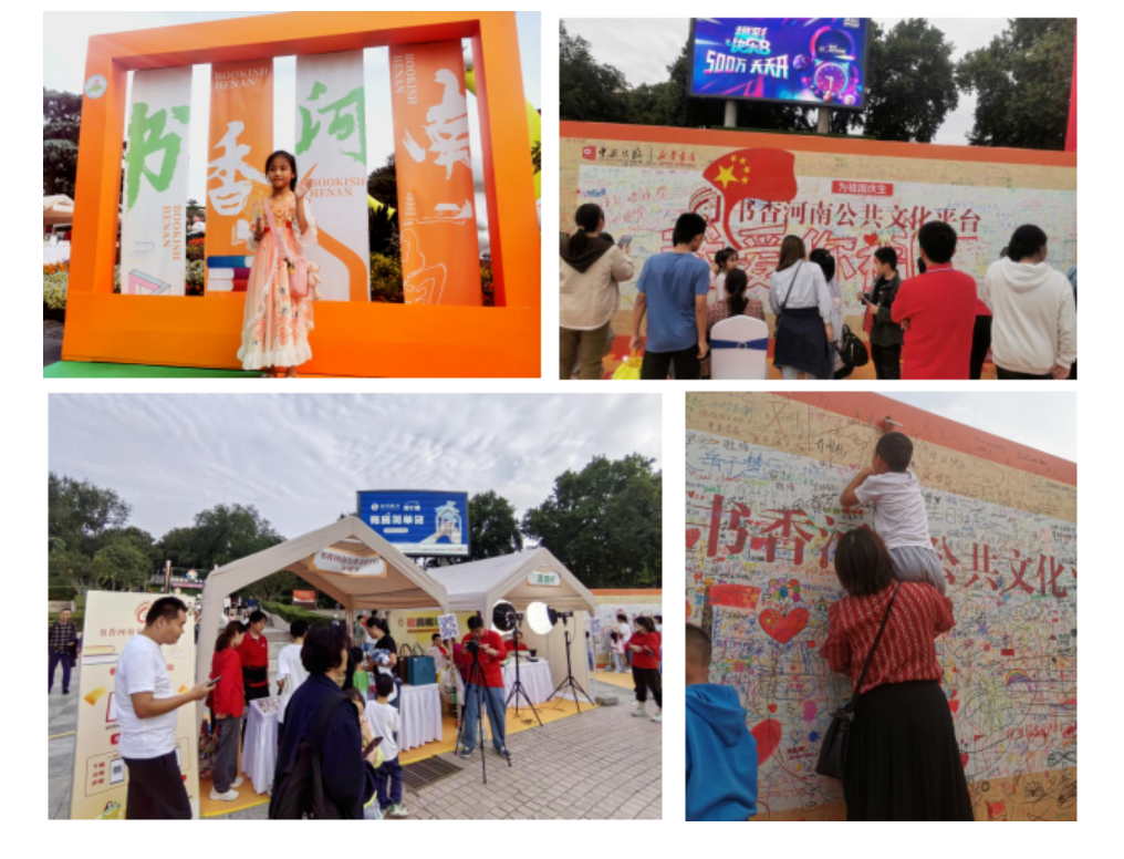 在活動(dòng)主會(huì)場(chǎng)鄭州市紫荊山公園,公益捐贈(zèng)、圖書交換、非遺文創(chuàng)、愛國(guó)彈幕、詩(shī)詞打卡、藏書票集章等互動(dòng)體驗(yàn)活動(dòng)打卡超1萬人次,現(xiàn)場(chǎng)游覽書展7.3萬人次,線上平臺(tái)瀏覽互動(dòng)超2000萬人次。活動(dòng)中,書香河南公共文化平臺(tái)得到有效推廣,新增用戶12156人,總用戶量7.18萬,瀏覽量84萬次。