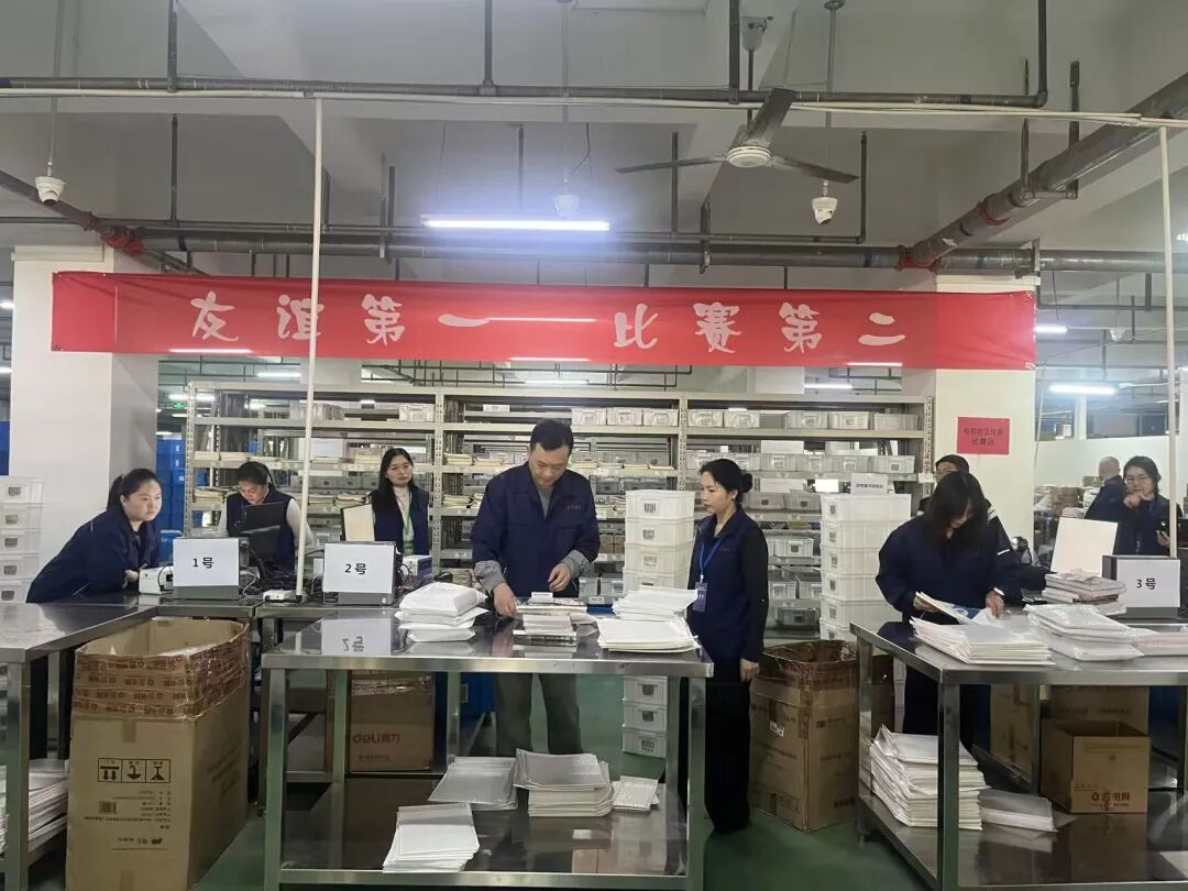 賽場上,選手們精神飽滿、奮勇爭先,構成了一副“比學趕超”的生動畫面。站駕叉車計時賽現(xiàn)場,參賽選手沉著操控,精準避開障礙、控制車速,在狹窄通道內(nèi)靈活轉(zhuǎn)向,既展現(xiàn)了嫻熟的駕駛技能,更凸顯了“安全第一”的作業(yè)理念;手工包裝團體計時賽現(xiàn)場,參賽團隊手法嫻熟、分工明確、配合默契,不斷刷新紀錄,實現(xiàn)“速度與質(zhì)量”雙優(yōu)雙提升;電商崗位技能賽現(xiàn)場,參賽選手精準操作,同時自如切換多個系統(tǒng),細致快速完成打包作業(yè),展現(xiàn)出極高的職業(yè)素養(yǎng)及精湛的手工作業(yè)能力。