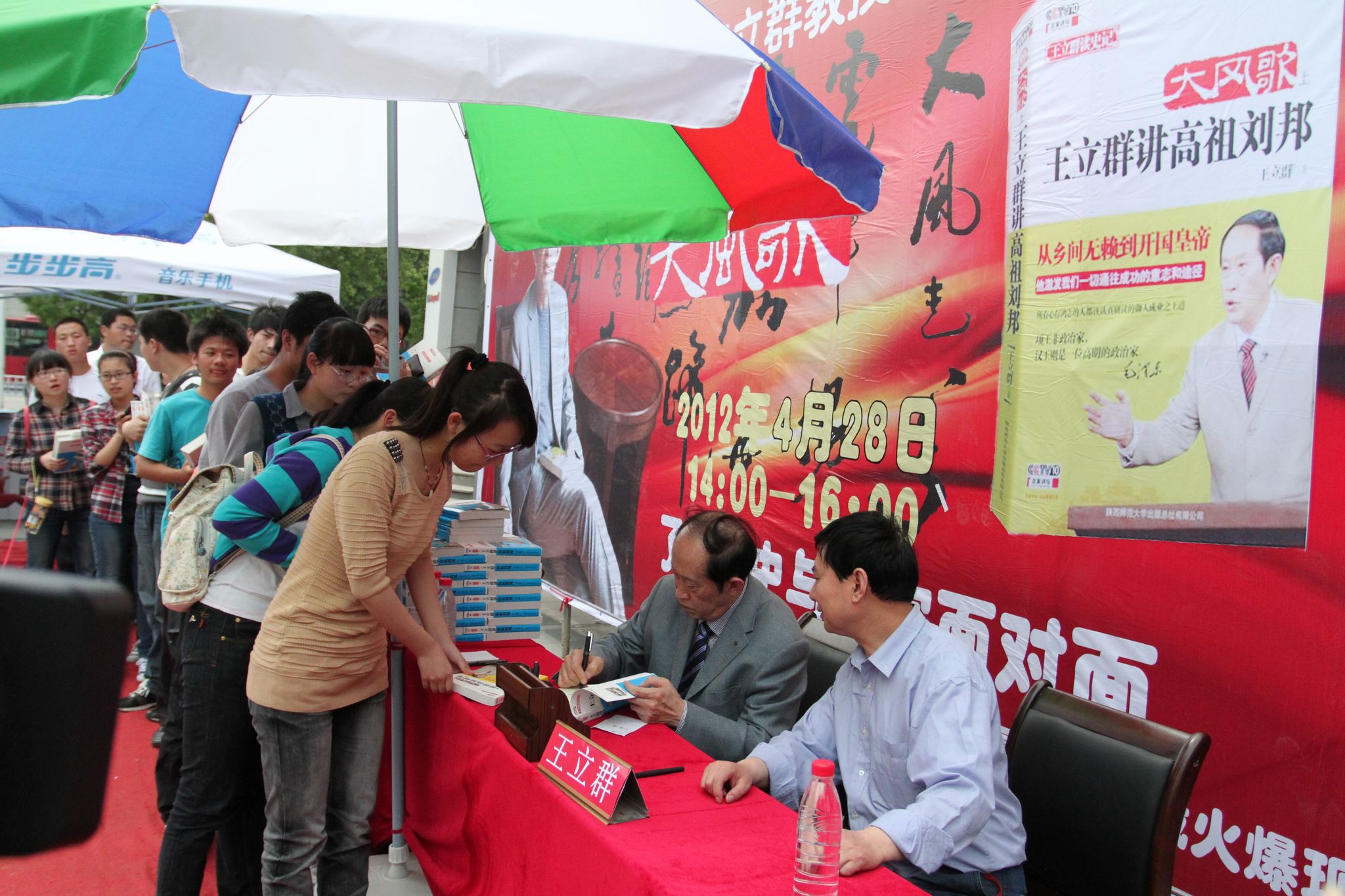 4月28日,央視《百家講壇》金牌主講人、河南大學(xué)文學(xué)院教授王立群攜其新作《大風(fēng)歌》來(lái)到駐馬店市店天中書城與廣大讀者見面交流,并為其新作簽售。