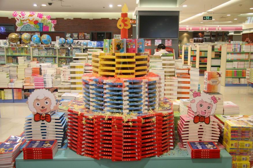 專(zhuān)題展臺(tái)聚攬人。節(jié)日期間,為豐富廣大讀者假期生活,鄭州購(gòu)書(shū)中心賣(mài)場(chǎng)內(nèi)逐層設(shè)立了專(zhuān)題展臺(tái):一樓開(kāi)設(shè)了“讀書(shū)興國(guó) 幸運(yùn)六三”的主題活動(dòng),凡年滿(mǎn)63歲的讀者可憑身份證獲取指定圖書(shū)一本,與祖國(guó)一起同慶63歲華誕;二樓布置了“愛(ài)我中華—國(guó)富安康和諧家”生活保健暢銷(xiāo)圖書(shū)展臺(tái),倡導(dǎo)健康生活理念;三樓設(shè)立了“書(shū)海揚(yáng)帆 品味人生”科普文教圖書(shū)展銷(xiāo),渲染出知識(shí)強(qiáng)國(guó)的文化氛圍;四樓搭建起“書(shū)香益趣 共享閱讀”展臺(tái),精心布置了喜羊羊、美羊羊、憤怒的小鳥(niǎo)等卡通造型,吸引著小讀者駐足選購(gòu)圖書(shū);五樓的“科技興國(guó) 與國(guó)同慶”主題,強(qiáng)調(diào)了科教興國(guó)的深遠(yuǎn)影響力。此外,大學(xué)路店和農(nóng)業(yè)路店也依據(jù)自身賣(mài)場(chǎng)特點(diǎn)搭設(shè)不同類(lèi)別圖書(shū)展臺(tái)。各專(zhuān)題展臺(tái)的設(shè)立不僅為賣(mài)場(chǎng)營(yíng)造出濃郁的節(jié)日氛圍,也吸引了眾多讀者的眼球,讀者們?cè)谡古_(tái)前紛紛拍照留念,并爭(zhēng)先選購(gòu)圖書(shū)。