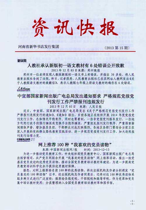 來源:河南省新華書店發(fā)行集團(tuán)有限公司  作者:河南省新華書店發(fā)行集團(tuán)有限公司  發(fā)布時(shí)間:2013/12/13 16:19:39  閱讀次數(shù):6650