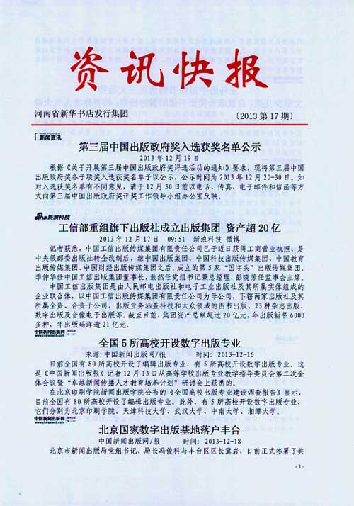 來源:河南省新華書店發(fā)行集團有限公司  作者:河南省新華書店發(fā)行集團有限公司  發(fā)布時間:2013/12/23 12:32:11  閱讀次數(shù):7048