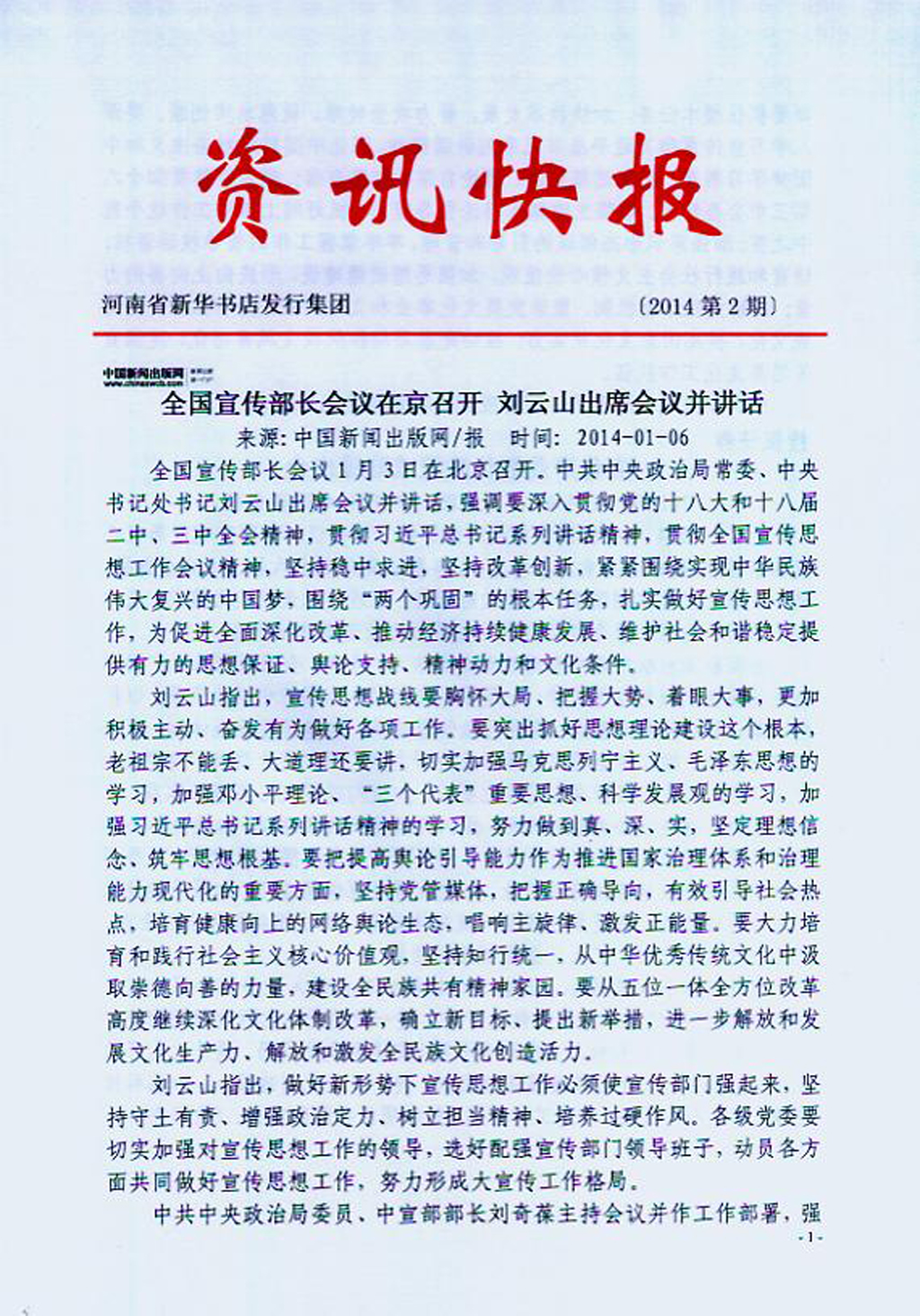 來源:河南省新華書店發(fā)行集團有限公司  作者:河南省新華書店發(fā)行集團有限公司  發(fā)布時間:2014/1/7 16:05:16  閱讀次數(shù):7169