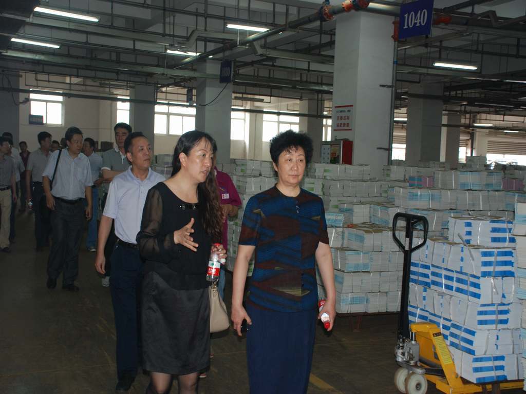 8月6日,中原出版?zhèn)髅郊瘓F(tuán)公司董事長(zhǎng)、黨委書記王愛,中原出版?zhèn)髅郊瘓F(tuán)公司副總裁、中原大地傳媒股份公司總經(jīng)理郭豫生,副總經(jīng)理王慶國、高燦華等一行來到河南出版物流配送中心,視察指導(dǎo)發(fā)行集團(tuán)2014秋教材教輔發(fā)運(yùn)工作。發(fā)行集團(tuán)班子成員陪同視察。