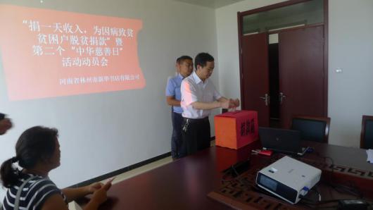 為促進社會慈善公益事業(yè)健康發(fā)展,進一步弘揚樂善好施、扶貧濟困的中華民族傳統(tǒng)美德,近日,林州市新華書店積極響應(yīng)市委、市政府號召,組織公司干部職工召開“捐一天收入,為因病致貧貧困戶脫貧捐款”暨第二個“中華慈善日”活動動員會。干部職工一致響應(yīng),紛紛慷慨解囊,踴躍捐助,掀起了捐款熱潮。經(jīng)過清點統(tǒng)計,該店共籌集善款6500元,已全部送交市慈善總會,主要用于健康扶貧和在全市范圍內(nèi)開展安老、撫孤、助醫(yī)、助教、濟困等慈善救助活動。